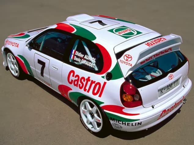 In 1997, the Corolla WRC was Toyota’s new weapon in bringing the company back to its former WRC glory days. This car was basically the old Celica rally car that was stuffed into a compact European-spec Corolla body. It inherited the Celica’s 3S-G 2.0-litre turbo engine and also featured an advanced X-Track 6-speed sequential transmission.