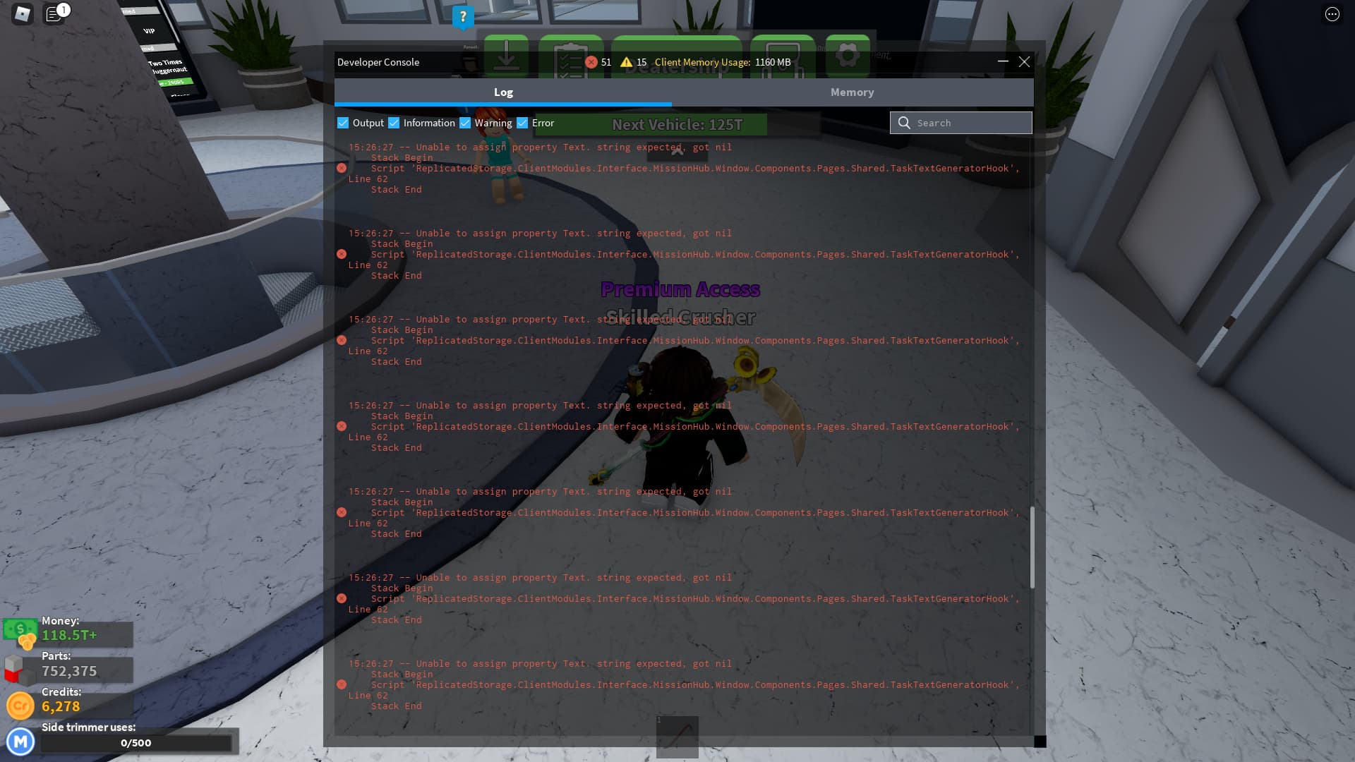 To make things understandable, watch the following video and keep track of the scrap counter alongside the parts counter (I used Roblox recorder for this one as my laptop would suffer running other recording tools):