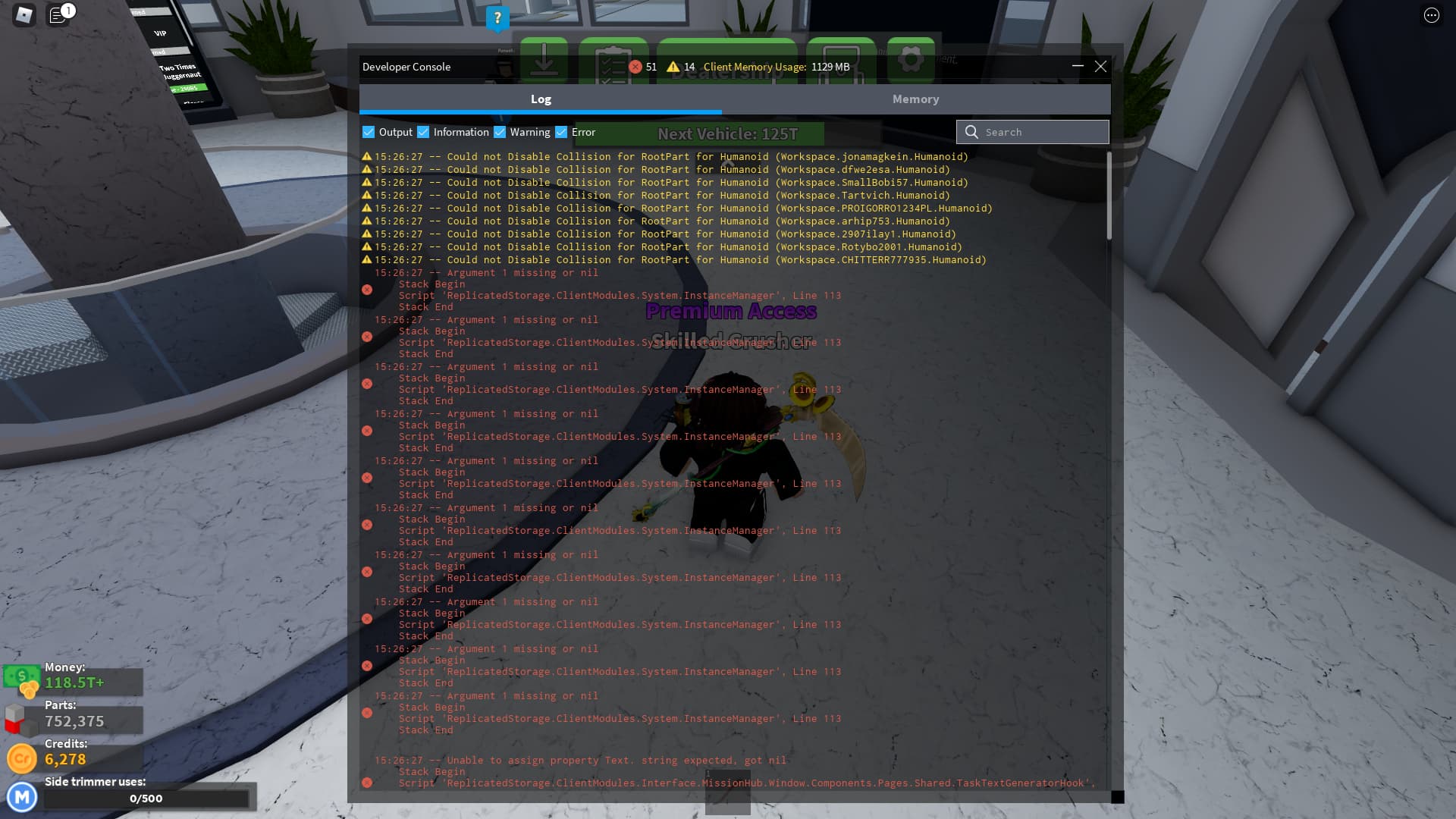- (Open console by pressing F9 on computer, or by saying /Console in the chat)