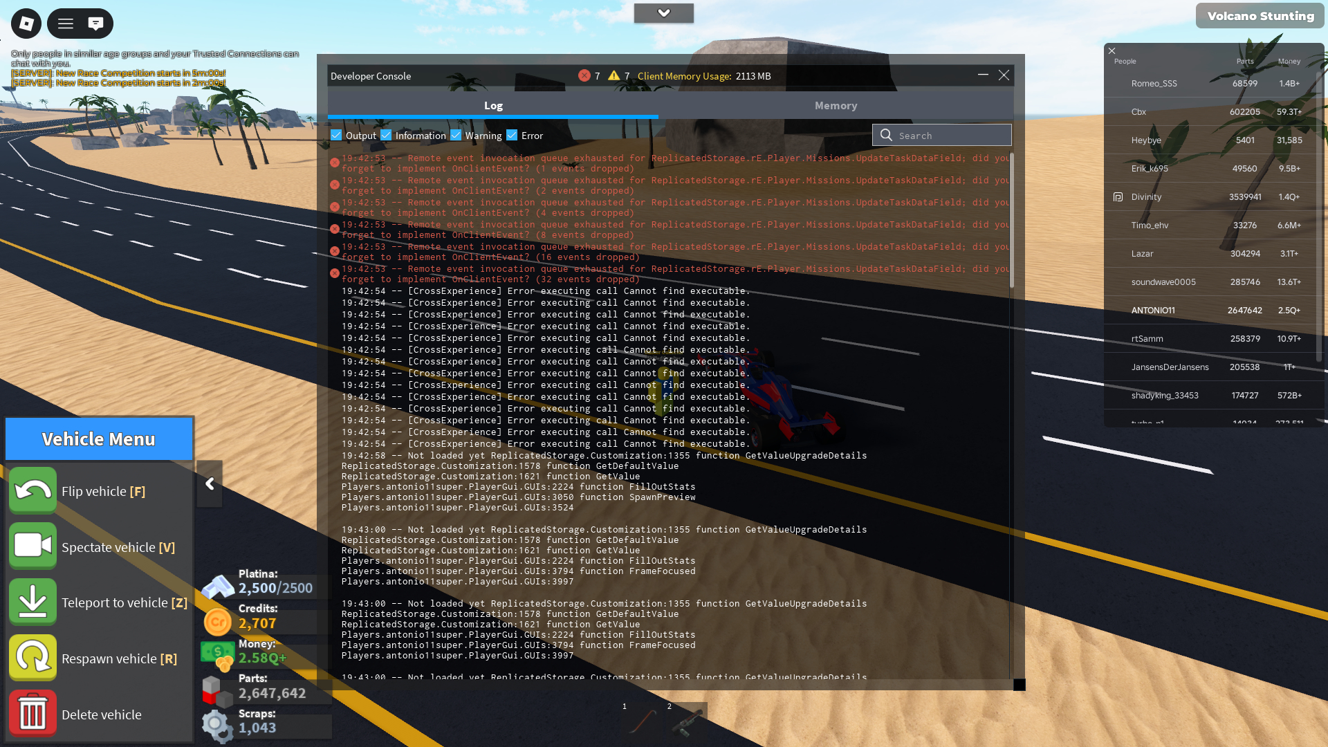 If yes, screenshot all red and yellow text in the developer console and post it here. (Open console by pressing F9 on computer, or by saying /Console in the chat)