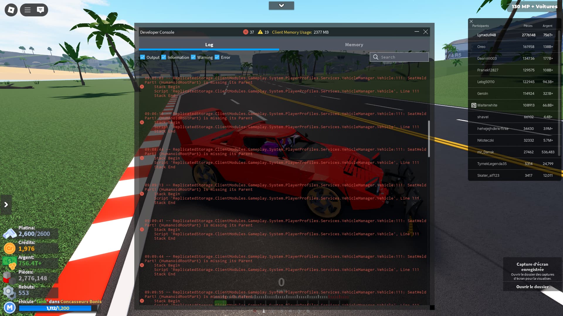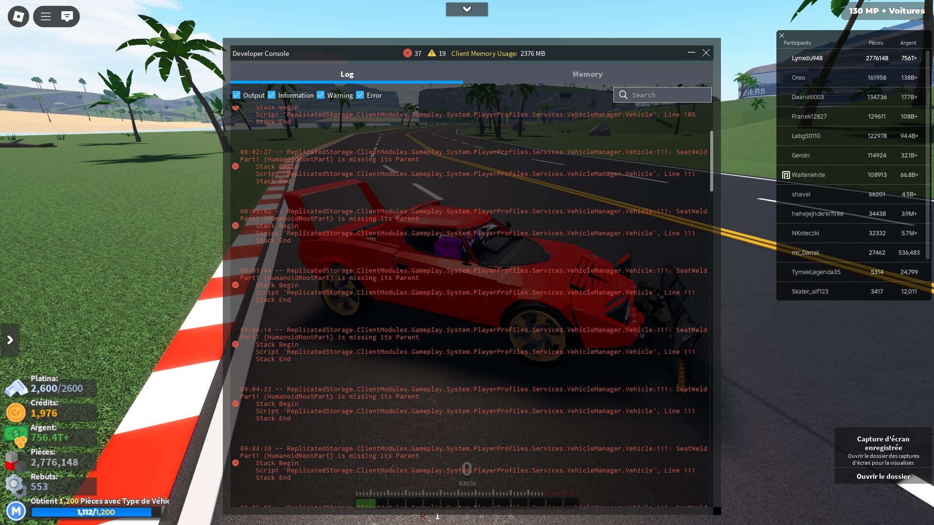 If yes, screenshot all red and yellow text in the developer console and post it here. (Open console by pressing F9 on computer, or by saying /Console in the chat)