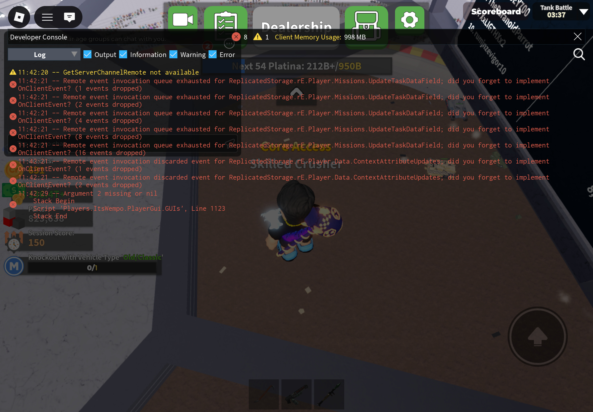 If yes, screenshot all red and yellow text in the developer console and post it here. (Open console by pressing F9 on computer, or by saying /Console in the chat)