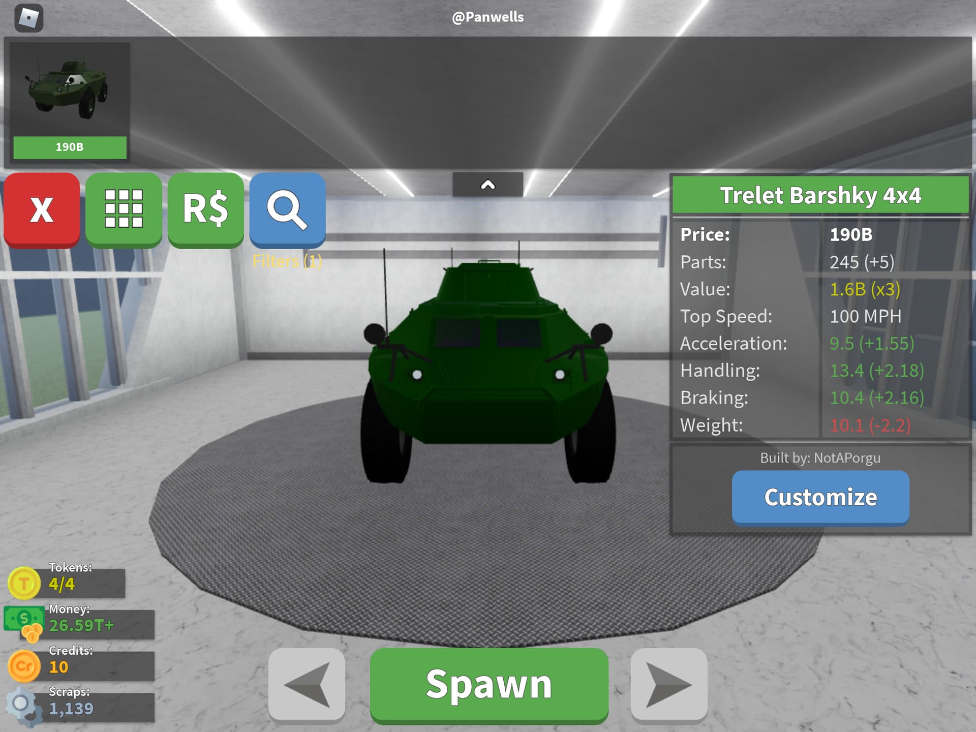 100 is quite an amazing speed for an APC. Although APCs are supposed to be able to outrun tanks, this one… I just think it is a lot too fast. Most APCs have a top speed of about 60MPH(100KPH), I think you should nerf the speed a bit.