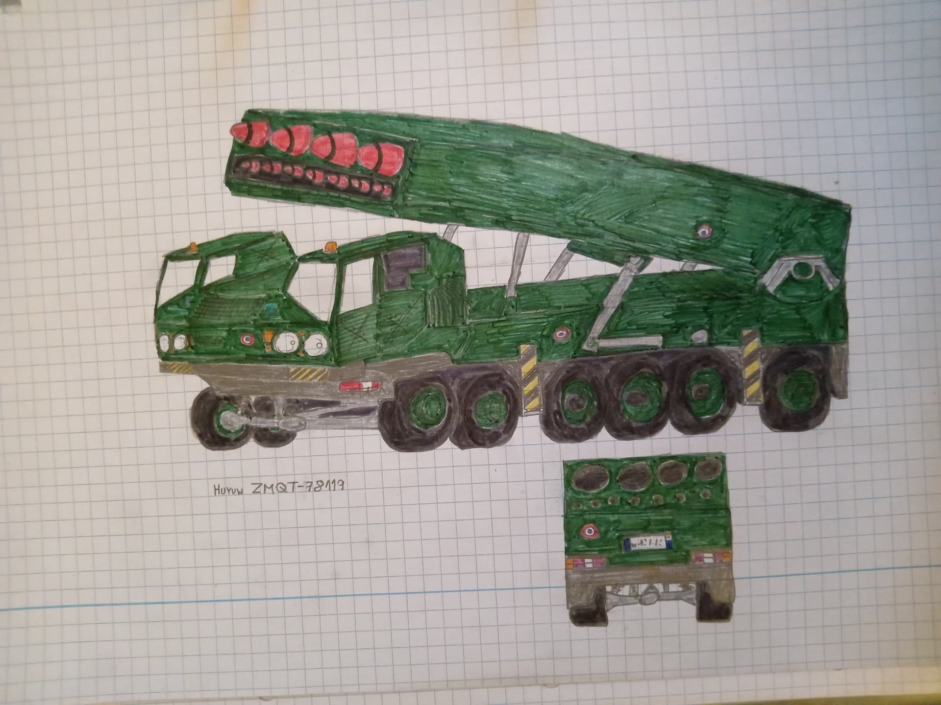 The Huyuw ZMQT-78119 is a katysha truck with a capacity of 4 big missile and 7 medium missile, it also has a fire extinguisher right behind the front bumper (so if you crash it, it automatically extinguish itself