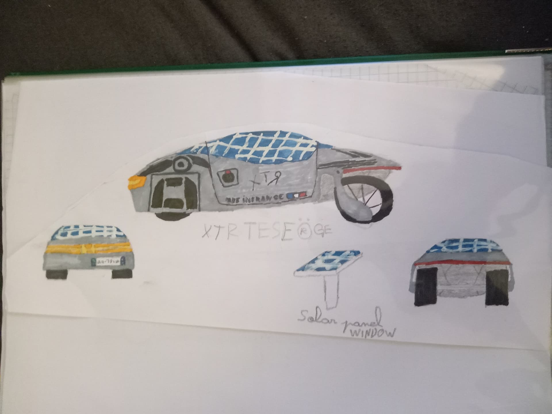 The XTR Teseörge is a electric powered vehicle that uses a windshield as a solar-panel.