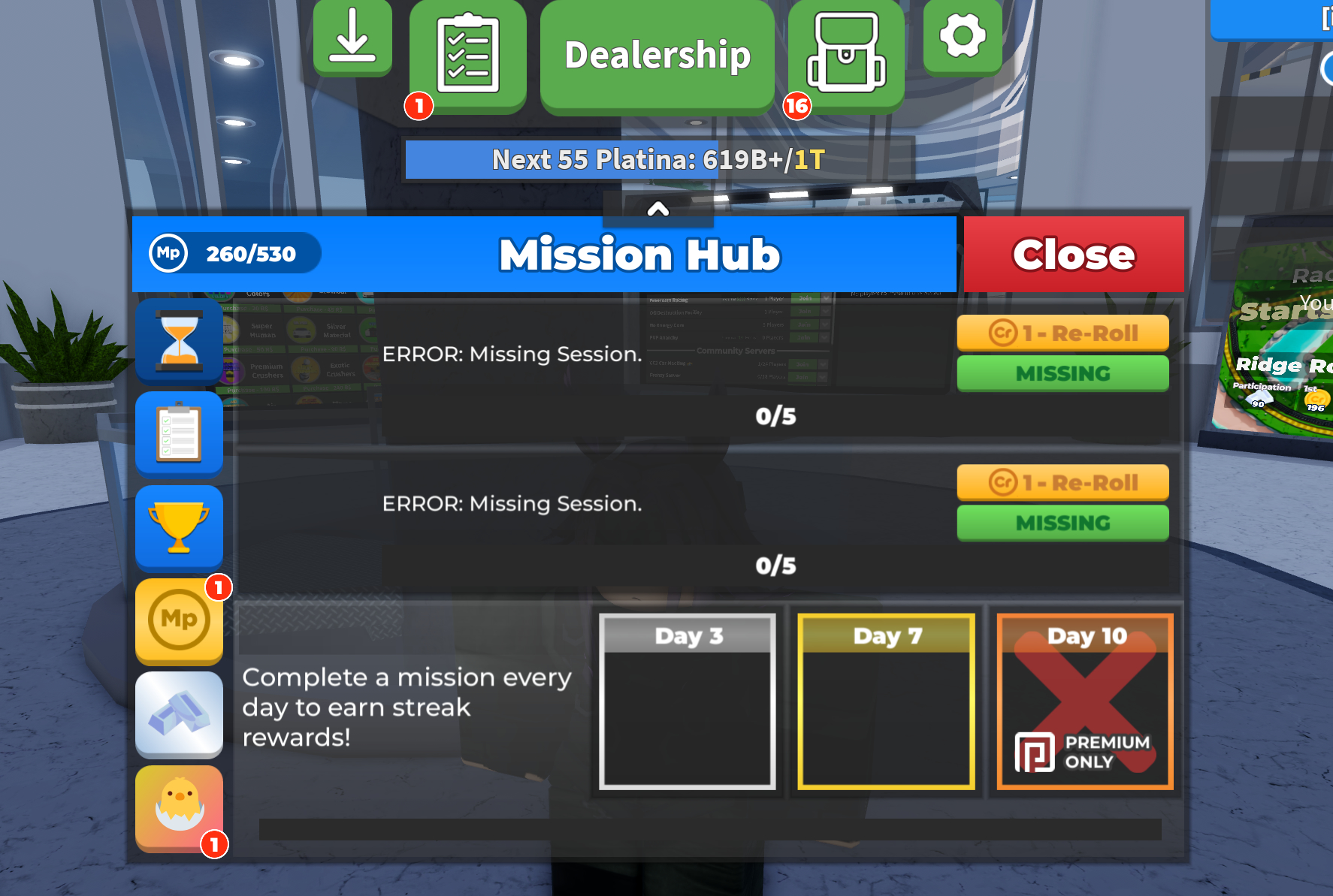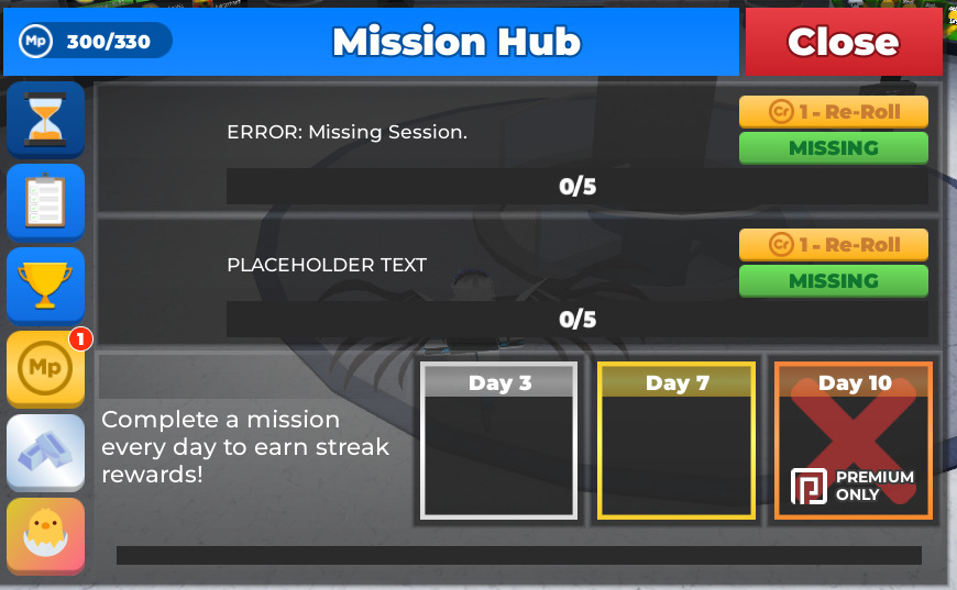 What is the bug? Answer: The mission tasks don’t appear on screen, only shows text “ERROR: Missing Session”