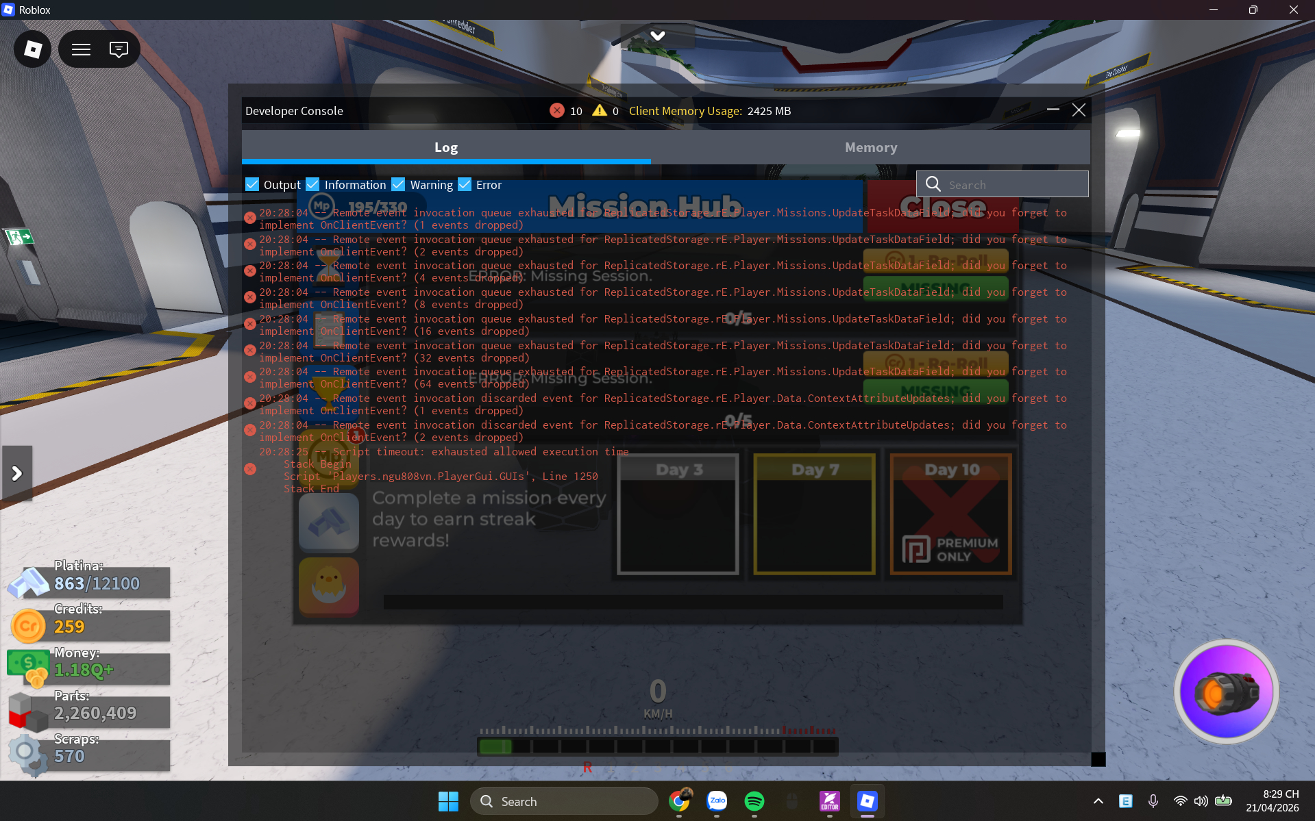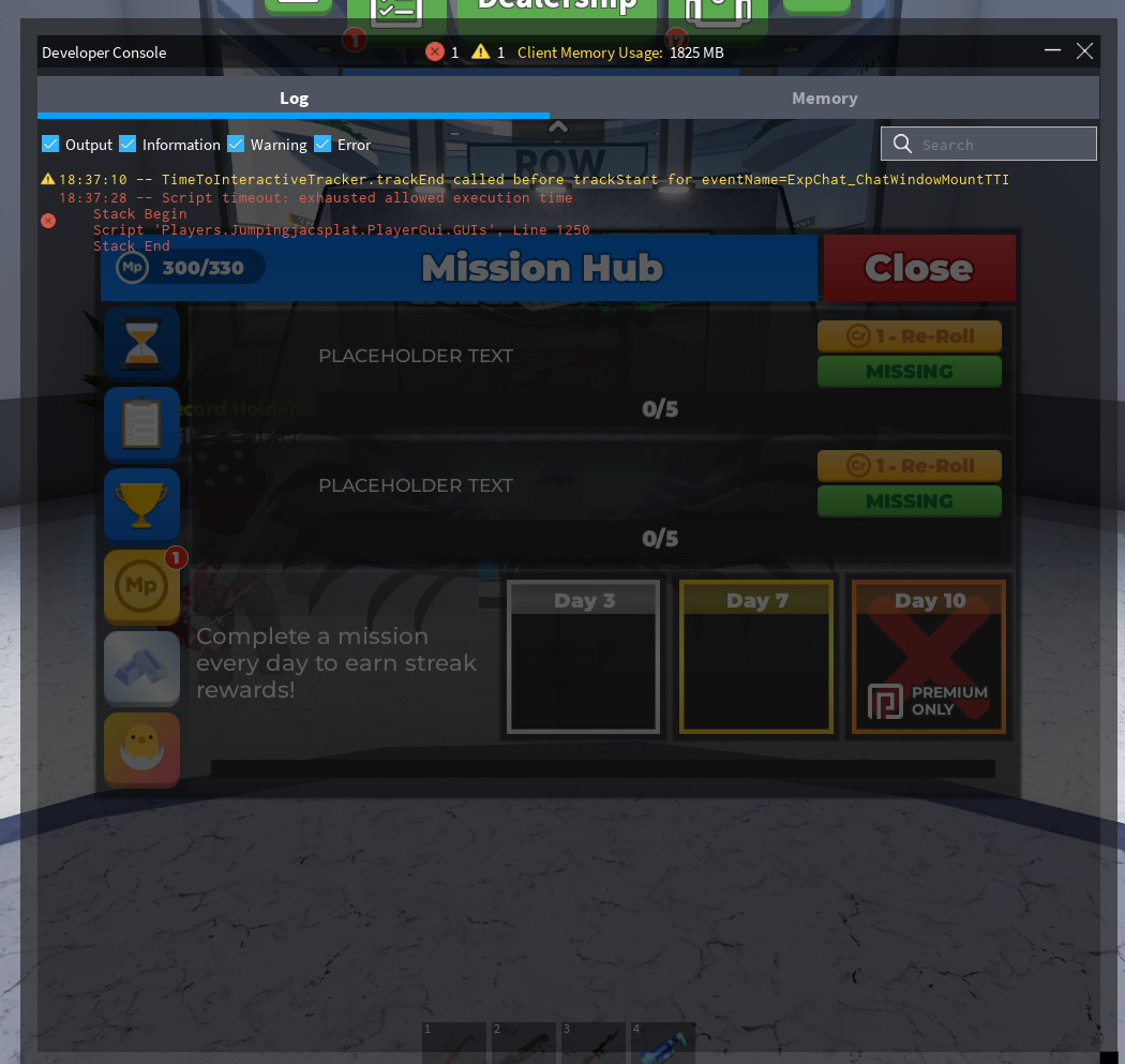 What is the bug? Answer: Cant load the daily mission table