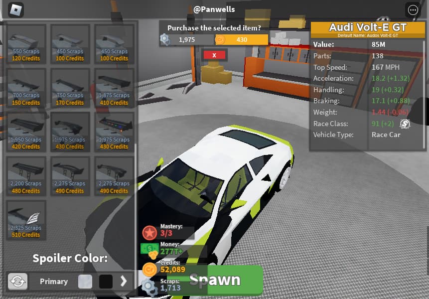 - Go to “spoilers” section of the car upgrade menu