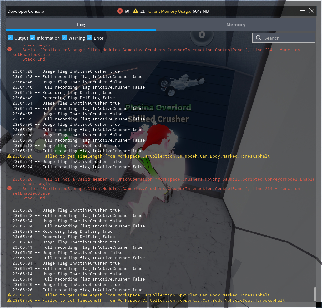 If yes, screenshot all red and yellow text in the developer console and post it here. (Open console by pressing F9 on computer, or by saying /Console in the chat)