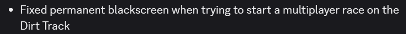 Yes/No: yes, but if someone else attempted to start a race on dirt track they would also black screen.
