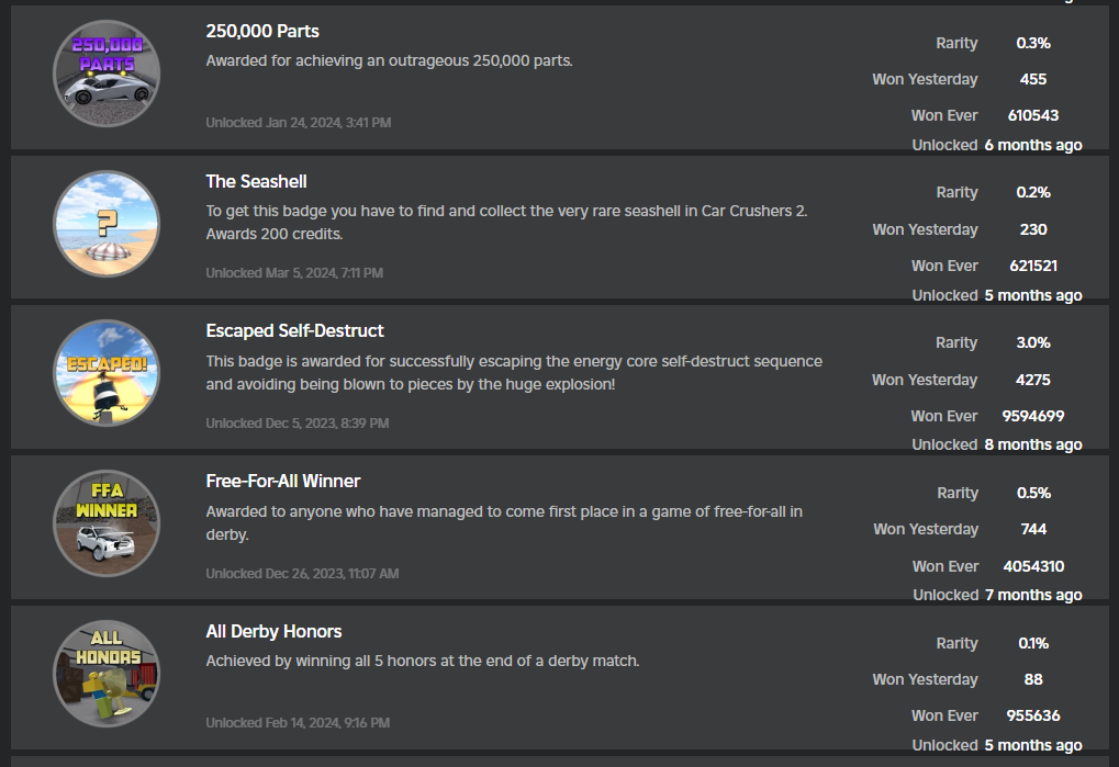 Here is a picture of my badges and when they were obtained.