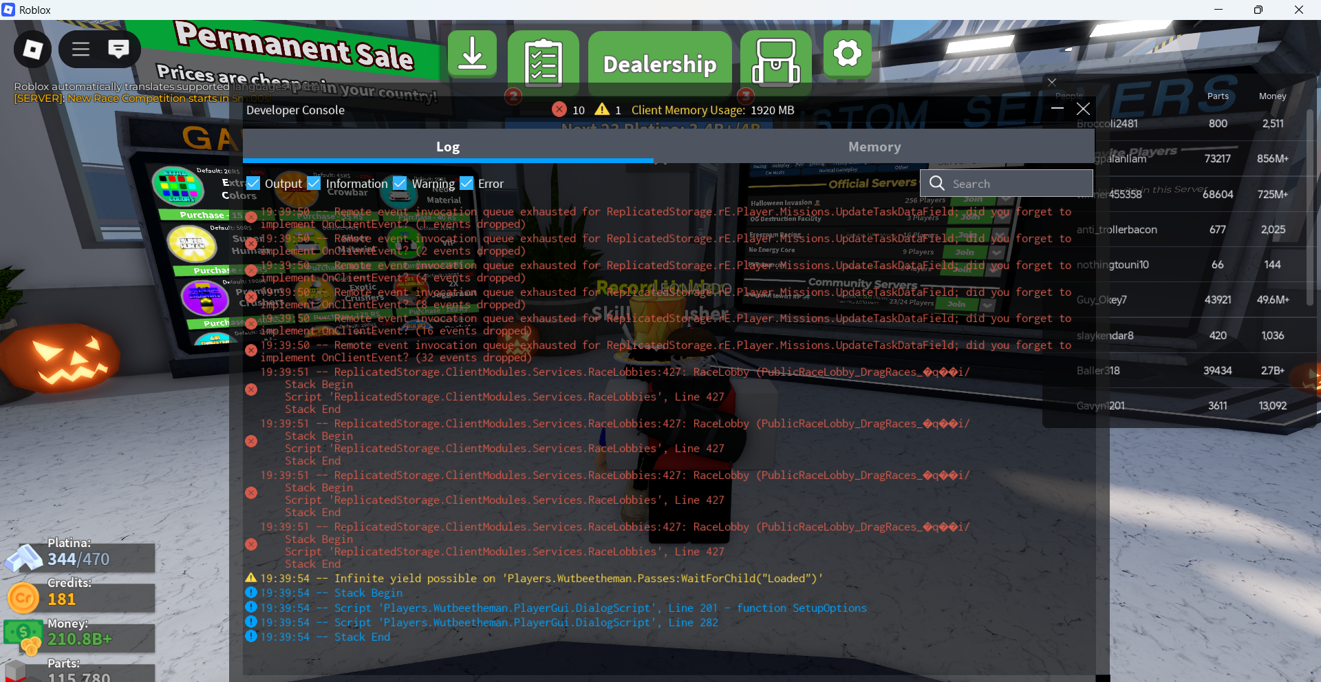 Answer:One hour ago i join car crusher buy 2 car with platina which my platina was 344 before buying car and i open halloween pack and i just join now and the platina is 344 as the same and my platina money and halloween pack stay the same although i did some change