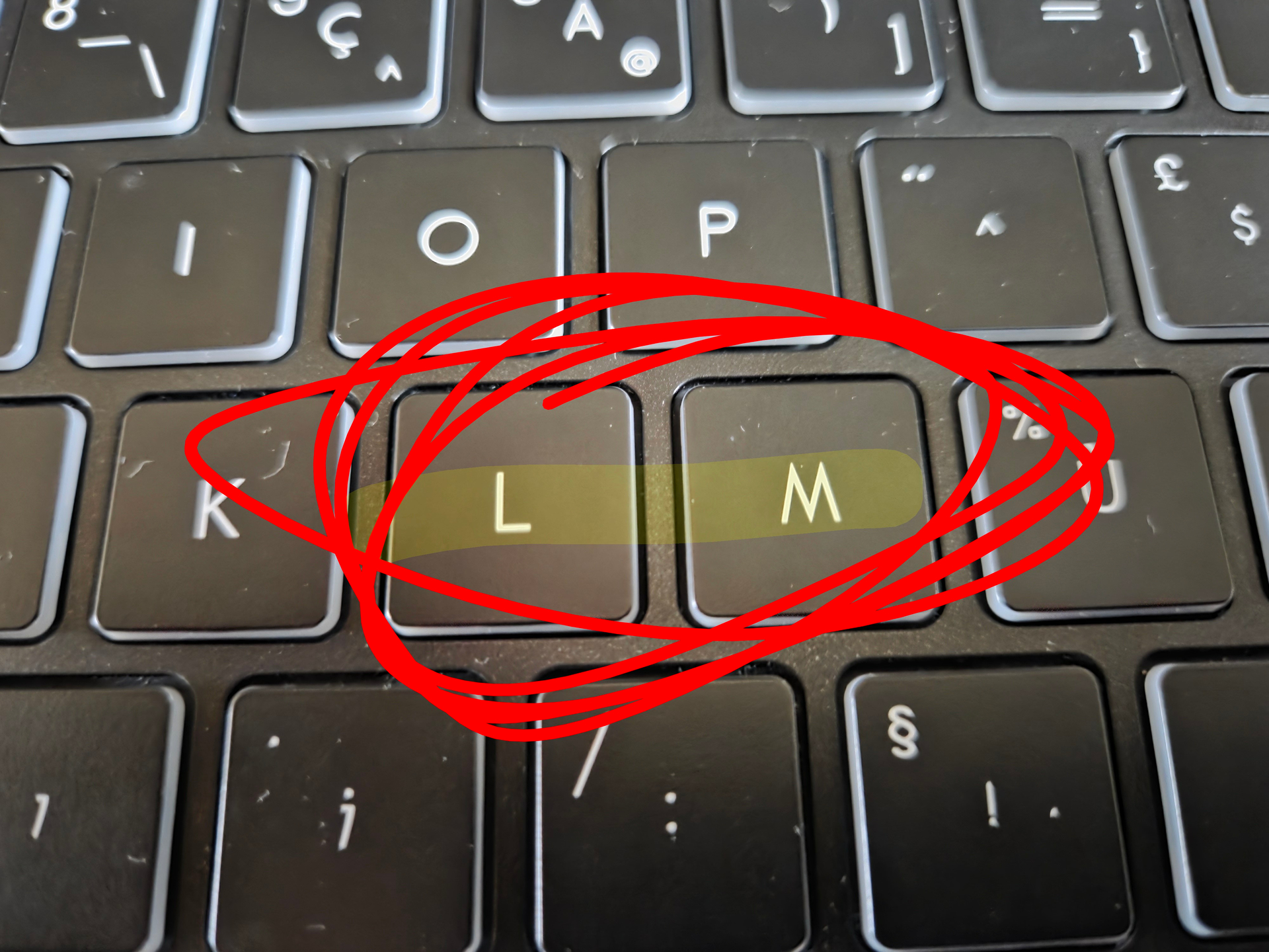 you have a really weird keyboard- (usually the m key is under the l)