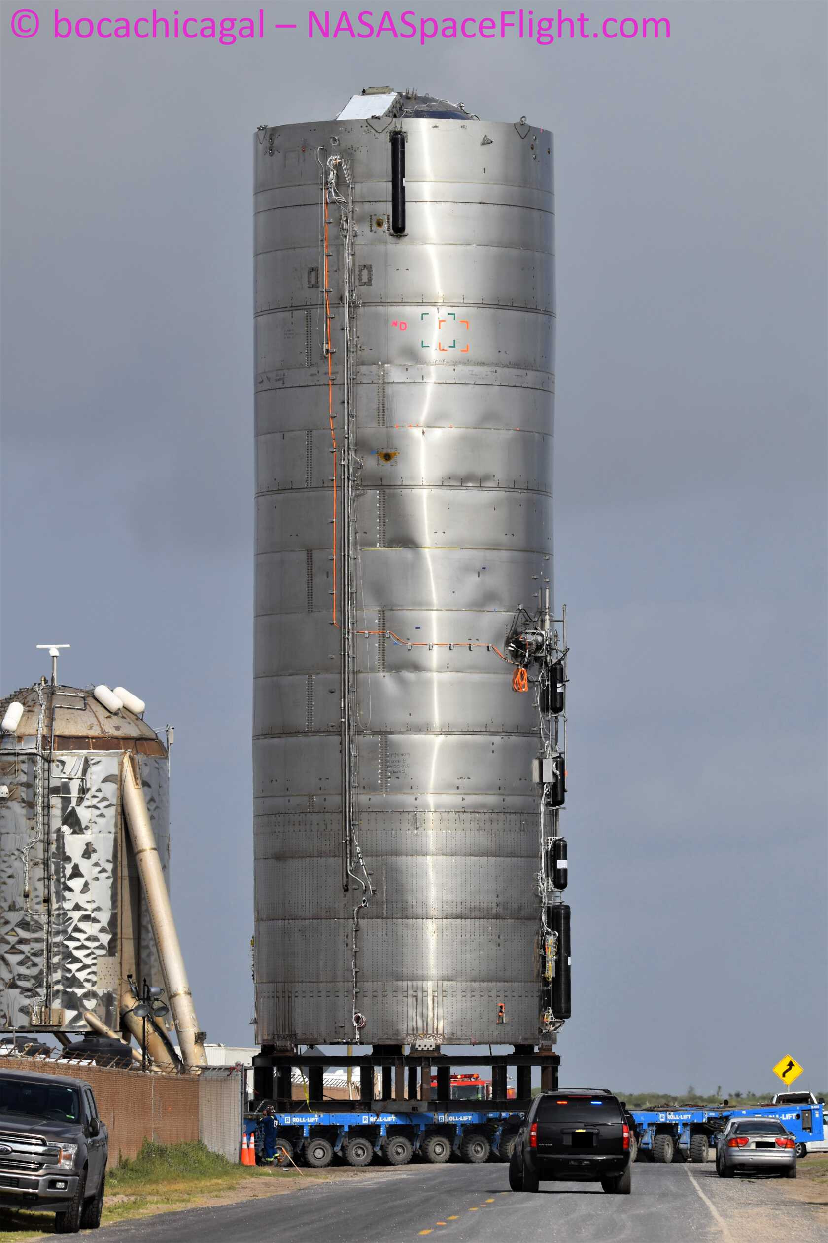 the sarens crawler is used to transport starship and it giant lifting crane to the launch site i don’t know stats for it so the comments can figure it out hopefully.