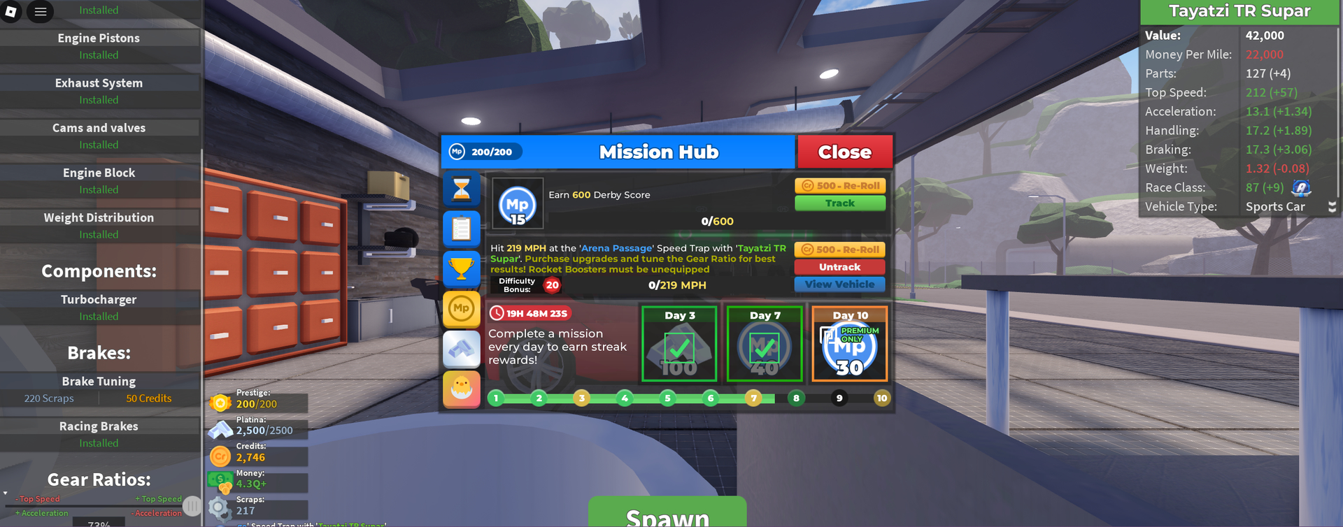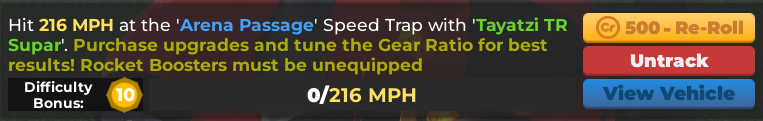 Answer: Daily Mission "Hit 219MPH at the ‘Arena Passage’ Speed Trap with ‘Tayatzi TR Supar’ mission seems undoable