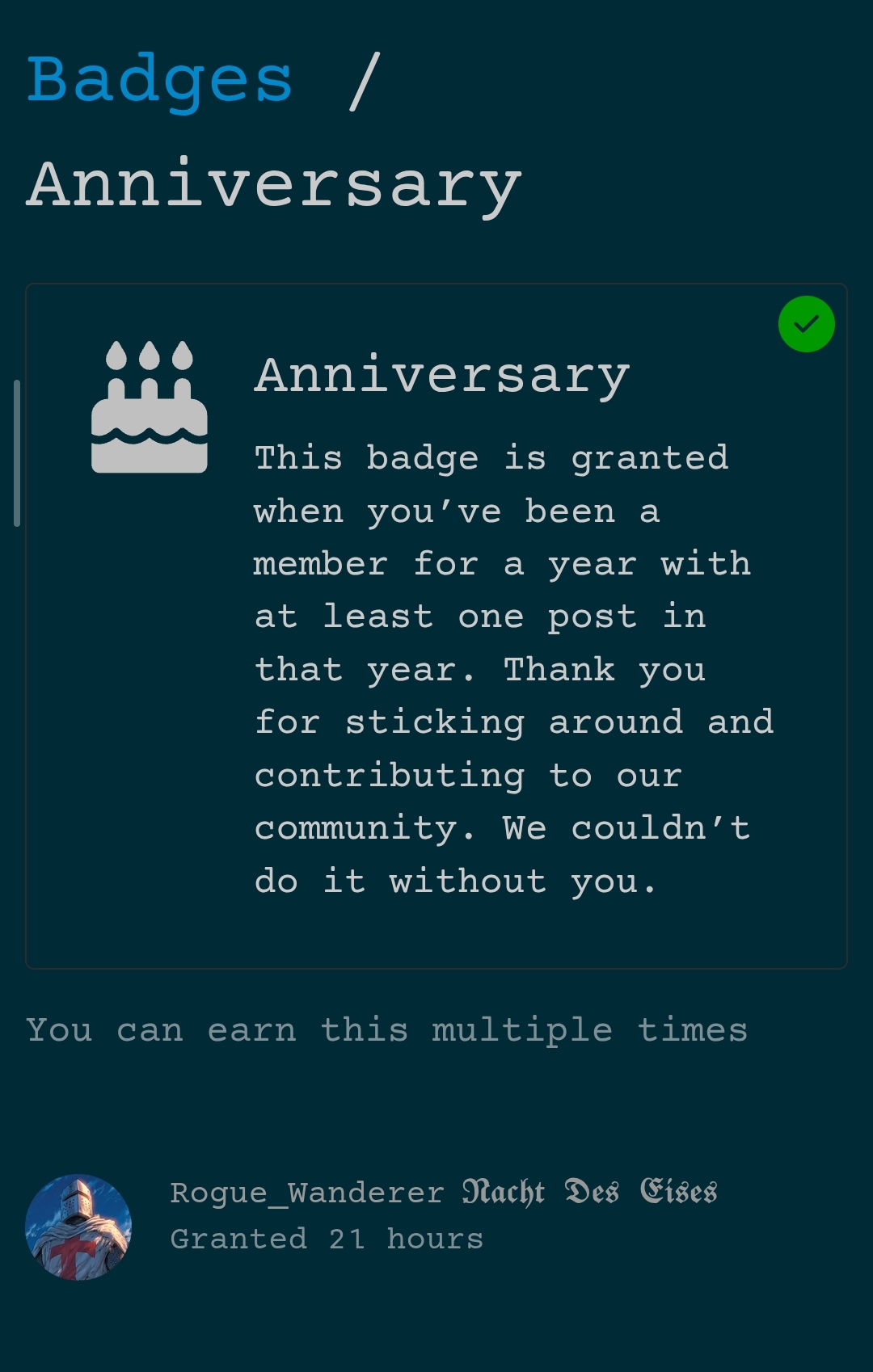 My account is one year old already?